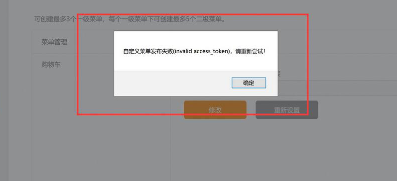 自定义菜单发布(invadlid access_token),请重新尝试!