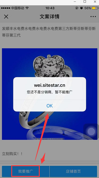 分销商访问分销文案后点击“店铺首页”时(如果开启了会员自动登陆,会直接生成会员,并成为该分销商的下级会员)
