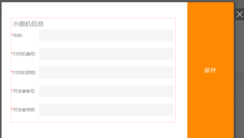 3.点击“打印机”,将需要打印的小票信息填写正确,(注:打印机暂时只支持飞鹅打印机,开发者账号及密钥在飞鹅官网申请注册即可),保存后,点击“编辑”按钮,可以对打印的小票进行设置需要的信息显示项,如图所示: